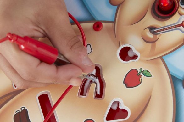 Il gioco più amato dai giovanissimi medici! Munisciti di polso fermo e nervi d’acciaio e sfida i tuoi amici a misurarsi con le operazioni chirurgiche più delicate, bizzarre e divertenti. Pesca una carta, impugna le pinzette chirurgiche e prova ad estrarre dal corpo del paziente la parte dolorante. Ma attenzione a non sfiorare i bordi metallici delle cavità all’interno del corpo perché il paziente inizierà a lamentarsi e il suo naso rosso si illuminerà e comincerà a ronzare.