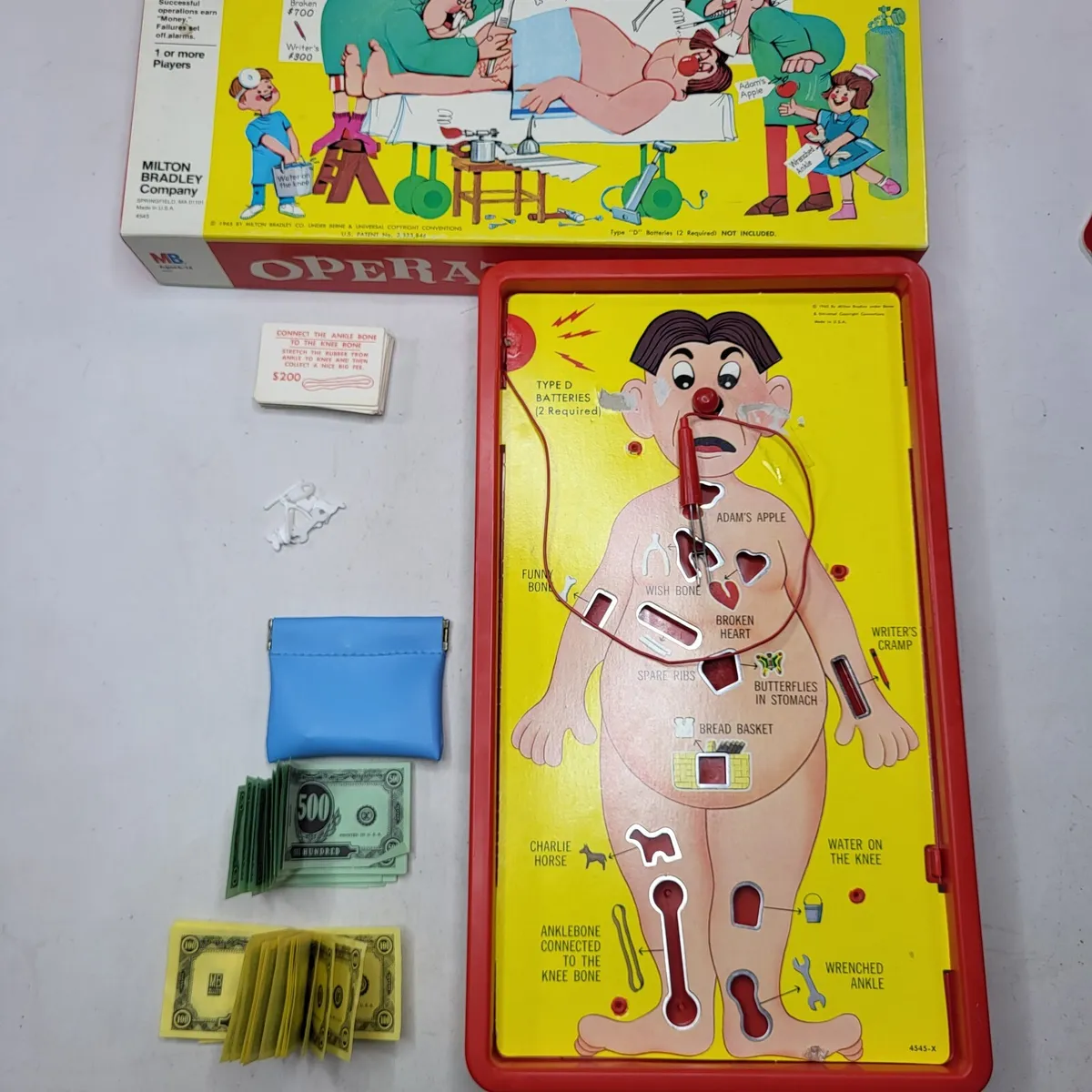 “È stato progettato con un cicalino e una lampadina invece di un campanello. Le pinzette hanno sostituito la sonda metallica e i fori sono stati riempiti con pezzi di plastica, come una matita per il crampo dello scrittore e un cavallo per il cavallo di Charley. I giocatori dovevano posizionare saldamente il strumento di metallo all’interno del foro, rimuovendo allo stesso tempo la causa del dolore del paziente senza colpire un nervo e causandogli ulteriore dolore.”