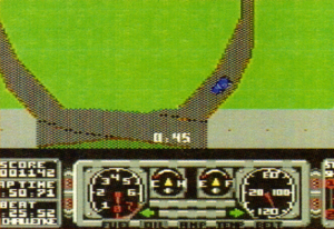 Dopo il miserabile tentativo di portare il suo predecessore sul Commodore 64 (i poligoni pieni si muovevano più lentamente del traffico londinese), i programmatori hanno rinunciato alla prospettiva 3D vista a occhio nudo, favorita dal coin-op, e hanno dato al gioco la stessa prospettiva dell’incidente. replay in Hard Drivin’.
