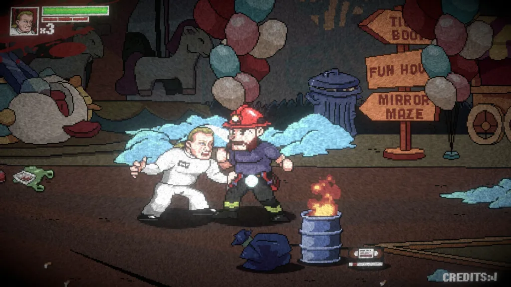 • Splendida pixel art e animazione: il gioco cattura l’essenza dei film Terrifier con una pixel art vivace e cartoonesca e animazioni fluide che raffigurano vividamente l’azione raccapricciante.