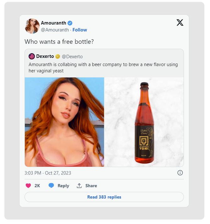 L’ultima impresa commerciale di Amouranth : Birra al sapor di Vagina
